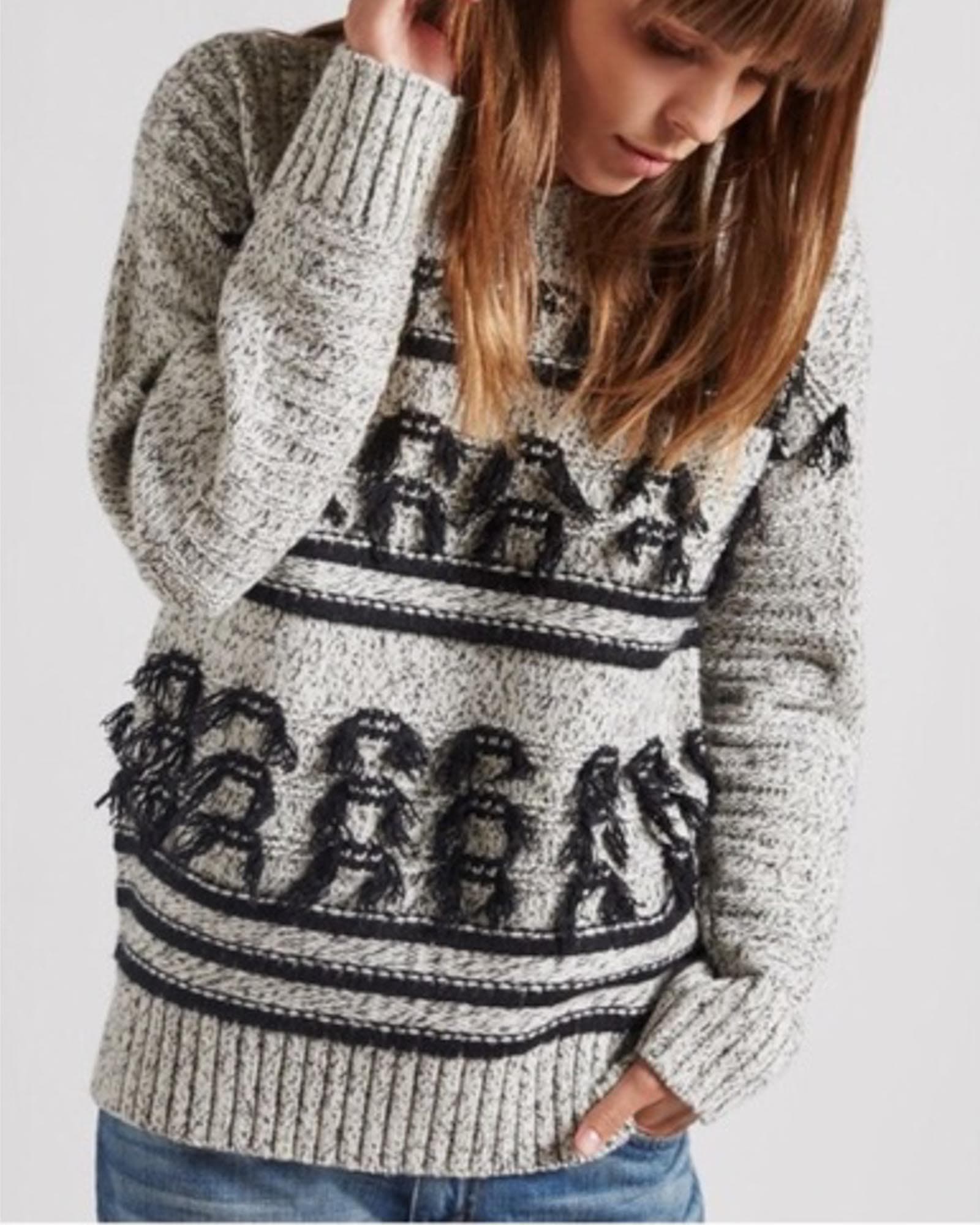 The Jacquard Fringe Wool Sweater The Revury